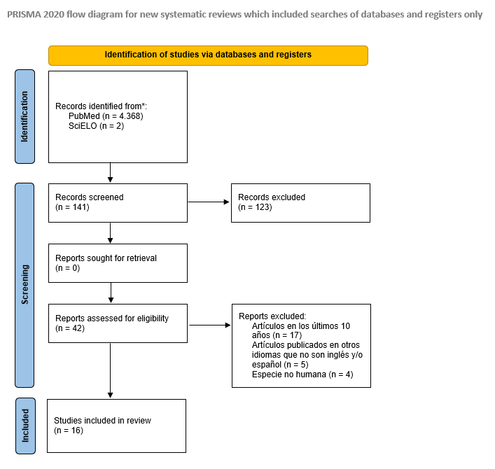 Como se puede observar en la Figura 1, se han tenido en cuenta para el estudio un total de 16 artículos que cumplen los criterios de inclusión y exclusión descritos en el siguiente apartado. Para representar los datos de la estrategia de búsqueda, se ha tenido en cuenta un flowchart, realizado gracias a